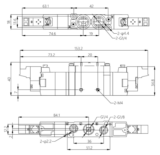 7系列三位五通低功耗中封電磁閥